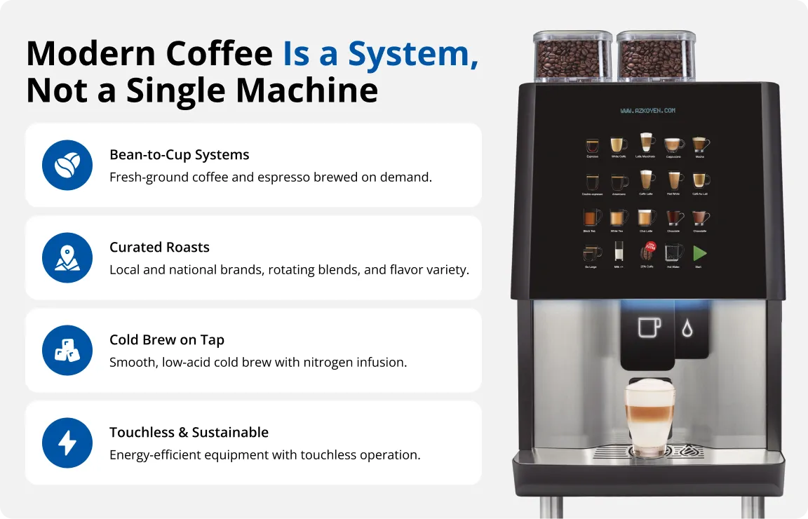 In 2026, employees expect more from their workplaces—and breakrooms play a bigger role than ever. Micro-markets deliver the experience, variety, and engagement today’s workforce values, while vending machines still provide an efficient, compact behind-the-scenes solution.